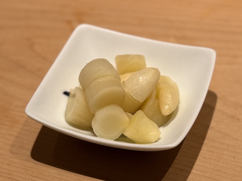 この大根ですが、なんと煮崩れしにくい福岡産の美小姫(みこひめ)とのこと。そして出汁には、塩を使わずに蛤と白甘鯛のお頭を使用。
