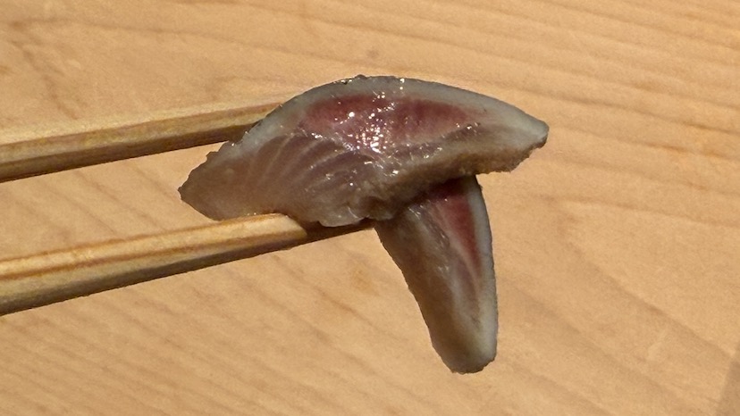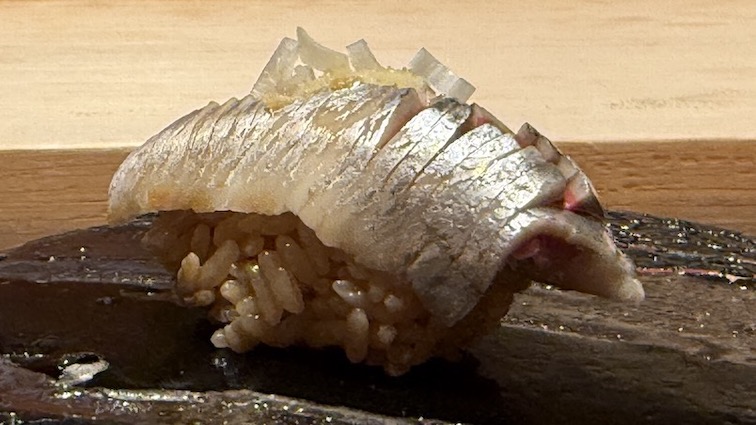 うはぁ、この子鯵ですが大きさに対して身の厚みがご立派。〆加減が良く、一口で食べればいきなり
