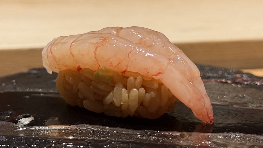 2年熟成させた真昆布による昆布締めの甘海老。ちょっとこちら、間違いなく甘海老で