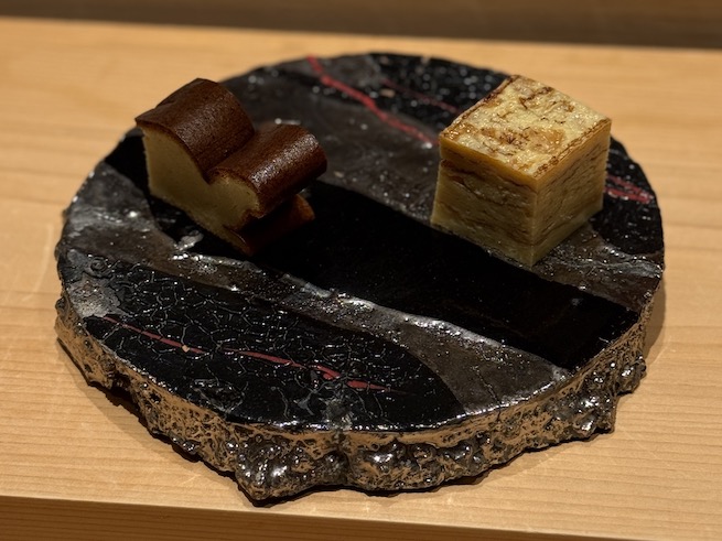 玉は定番の厚焼き玉子と牡丹海老と自然薯を使用した玉子。まるでバスチーのようなルックスですが、味わいも香ばしく焼き上がっていてバスチーを彷彿(笑)