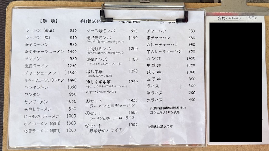 まず行列している場合ですが、店頭でメニューの横にある紙に記入することになりますよ。