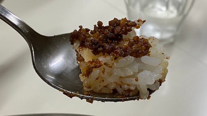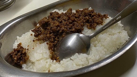 いやぁ、スパイシーひき肉とご飯を同時に食べると、スパイスの刺激により逆にお米の甘さが際立つよ🙋♂️