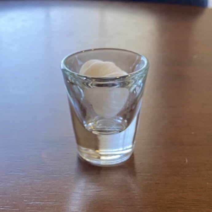 おしぼりは時々お鮨屋で見かけるタイプ、水を含むとイモムシのようにウネウネと大きくなる便利なやつ(笑)