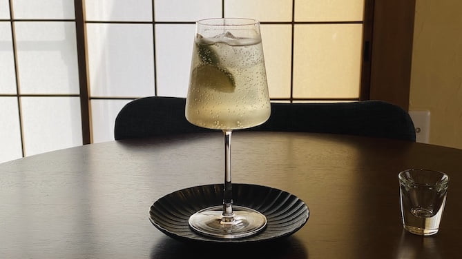 ノンアルは重くてグラスの首が折れないか心配になるようなご立派なグラスにて登場✨