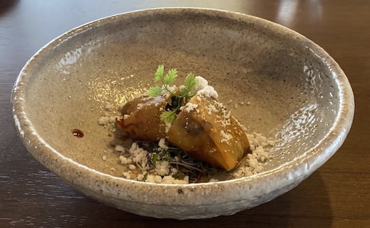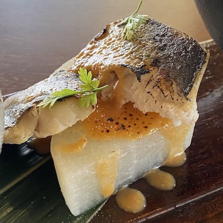続いて昆布出汁で煮た大根に今が旬の鰆。自家製の味噌ソースに焦げ目を付けているあたり、仕事の細かさが良くわかります😍