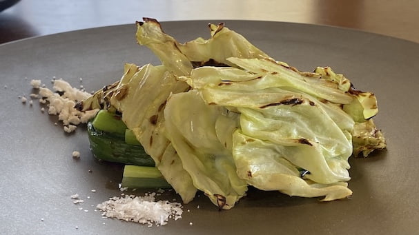 この日のメインはしずおか和牛から頂上と言う和牛。上には春キャベツがたっぷりと乗せられているので、和牛の姿は確認出来ず。