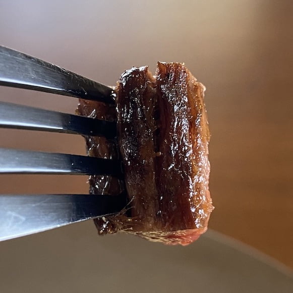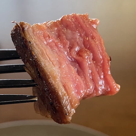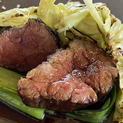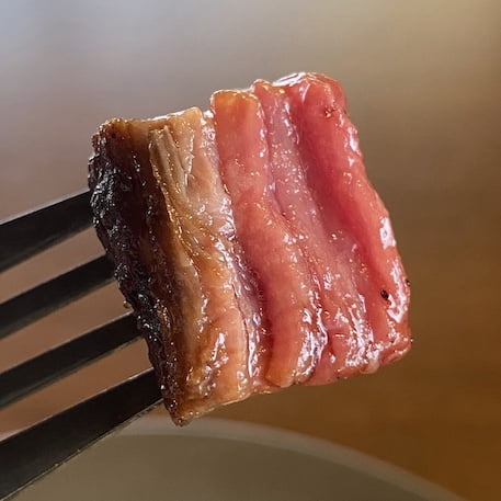 肉の周りがしっかりと香ばしく、赤身肉は噛めば噛むほどに旨みが溢れ出して