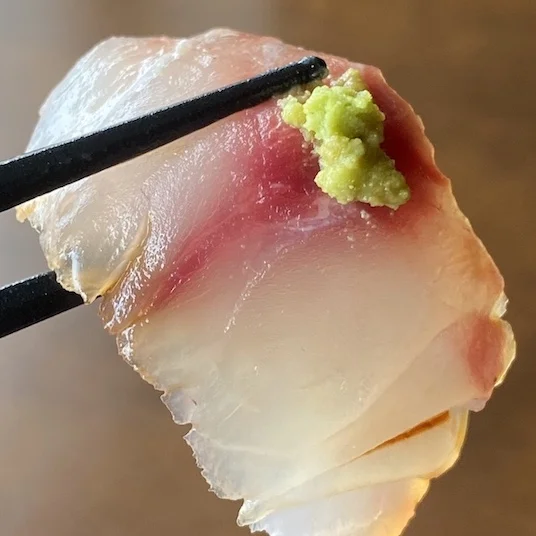 鰆(サワラ)かと思っていたのでがこちらは目鯛💁♂️ 脂がほのかに回っていますが、鮮度の良さを感じさせる身質が