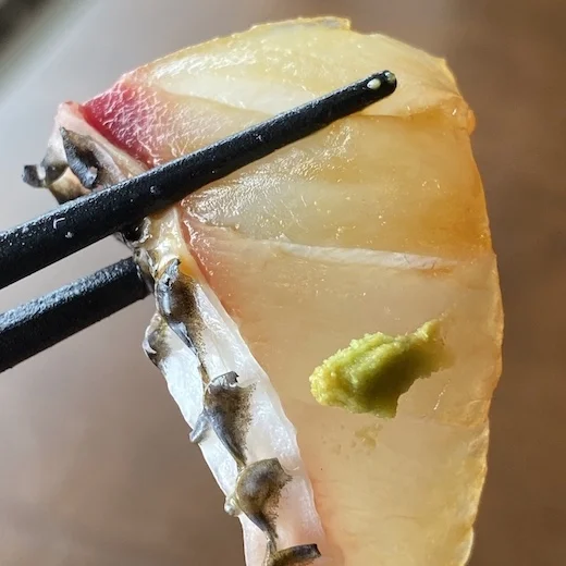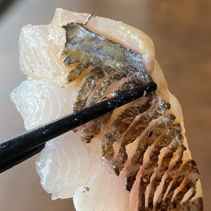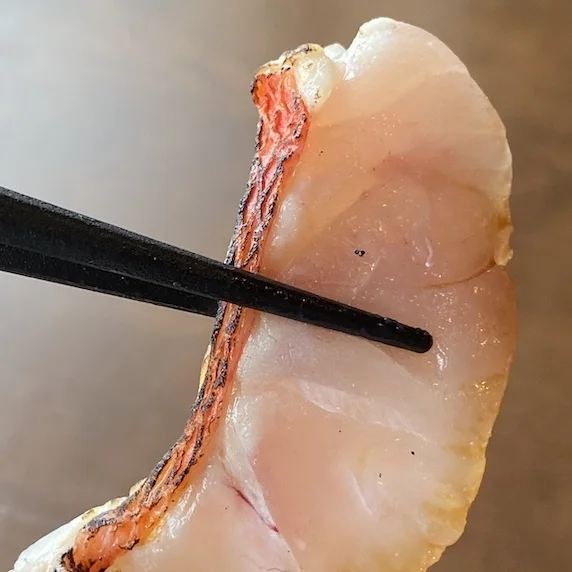 しっかりとした皮目が特徴的な笛吹鯛。プリプリの皮目が意外に薄くて、おそらく笛吹鯛を食べるのは今回が初めてですが