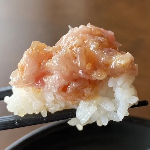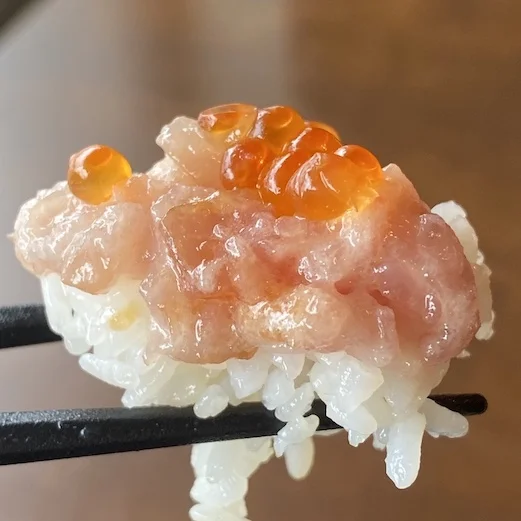 すき身には醤油ではなく、味付けされたイクラが抜群の相性なので