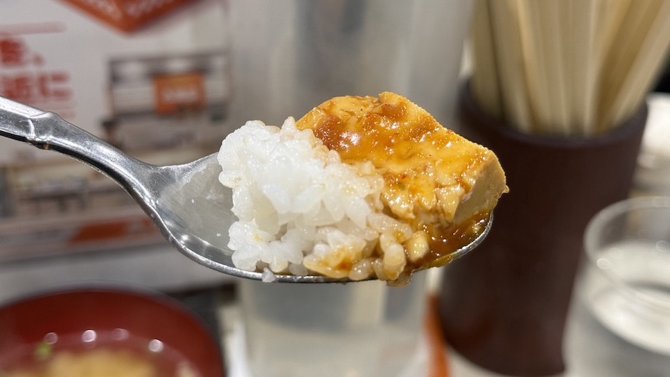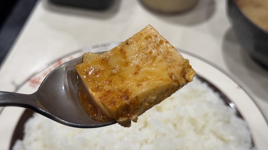 味わいは明らかに麻婆豆腐とは異なり、ニンニクがガッツリ来た後に辛味&酸味が押し寄せてきます。何味ですかと聞かれたら、ニンニク味ですとしか答えられない(笑)