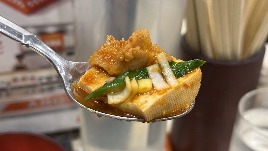 まずは警戒しながら豆腐を食べてみると、これだけでしっかりニンニクのパンチが効いて