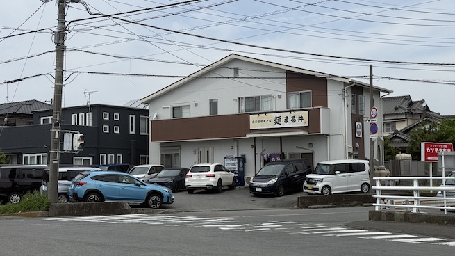 ちょっと遠目から麺まる井さんの店舗。いつも前の道を通るたびに見ているのですが、駐車場が空いていることがほとんどない人気店💦