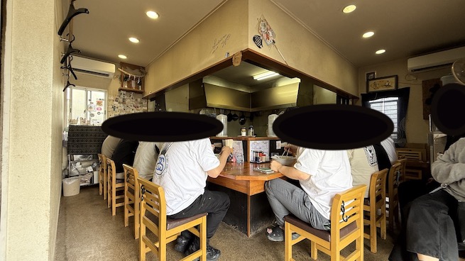 後日、再訪した際に満席の店内をパシャリと📸 二郎系ラーメンが主力ということもあり、店内は野郎どもが九割占拠しております(笑)