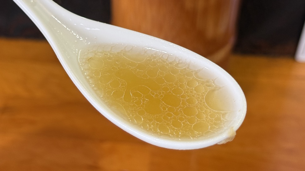 まずはスープから飲んでみると、しっかり豚のパンチが効いており塩気はやや強めの設定で