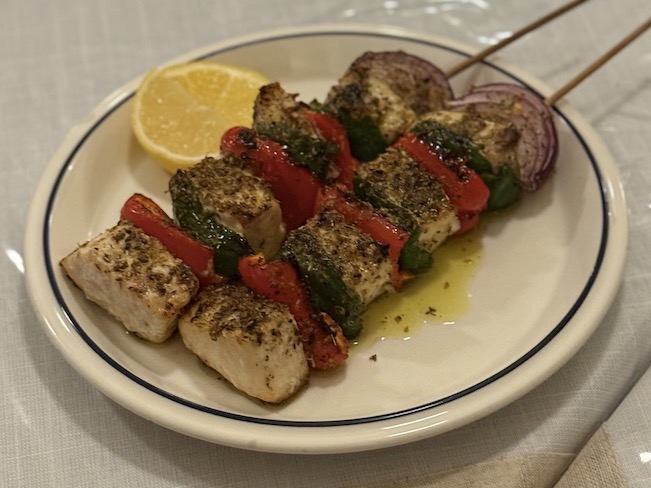 魚のスプラキとは、白身魚と野菜の串焼き料理。