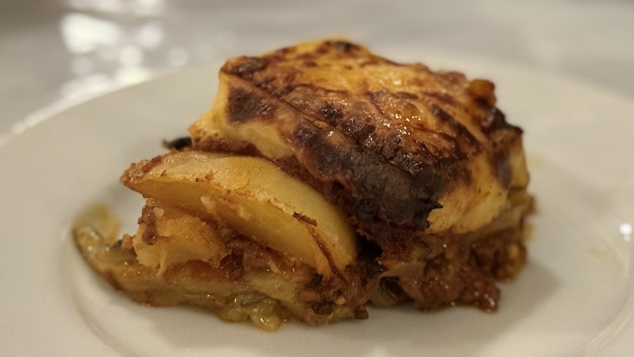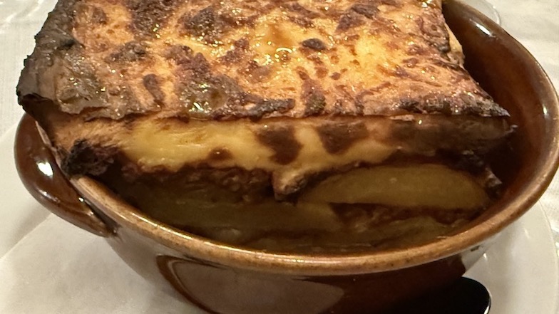 下にナス、その上にじゃがいも、さらに上には牛肉のミンチ、そこにベシャメルソースで最後にチーズが確認されますな🤤