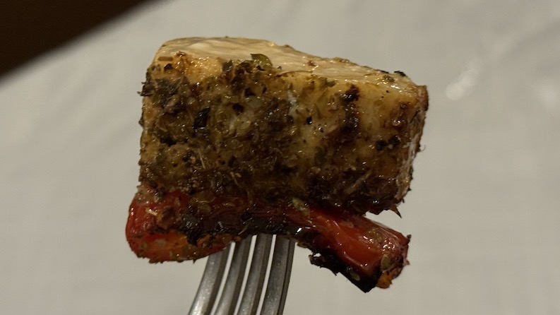 なんじゃこれ、今まで食べたことのない味わい😍 しっかりとオレガノが効いており、なによりこの白身魚がめちゃんこフワフワに仕上がっています! そして白身魚自体はとてもタンパクなのですが、オリーブオイルにより適度にジューシーな感じ。