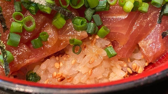 まずは漬けだけで食べてみると、色んな部位が入っておりこちらは脂身の少ない背側かな。鮮度が良くパッツリとした身に、漬けダレが程よく絡んで
