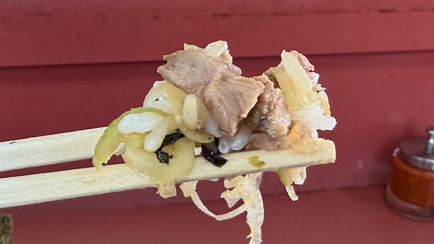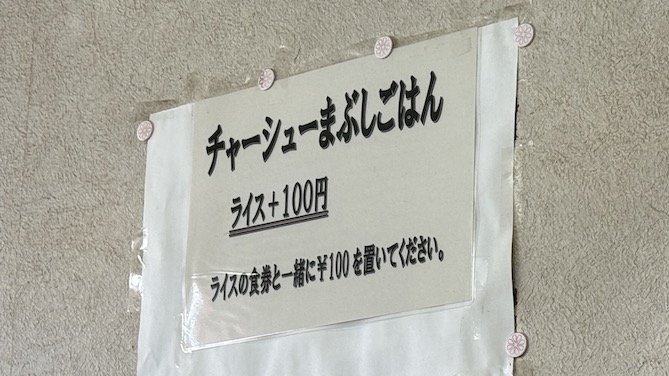 ライスの食券を購入して、そこに現金で100円をプラスするとチャーシューまぶしごはんに変身。これね、まじで美味しかったので、ライスを食べるならマストアイテムですよ🙋♂️