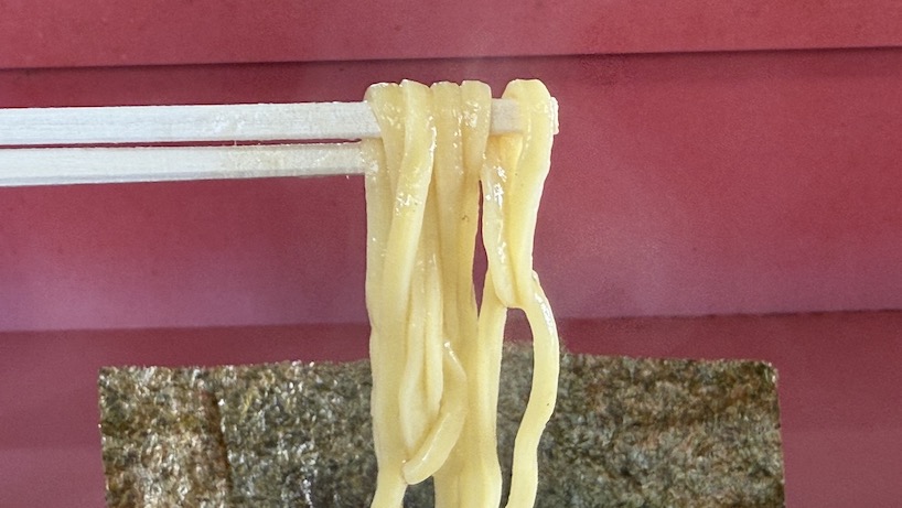 麺はやや太めの平打ちとなっており、すすってみるとこれが