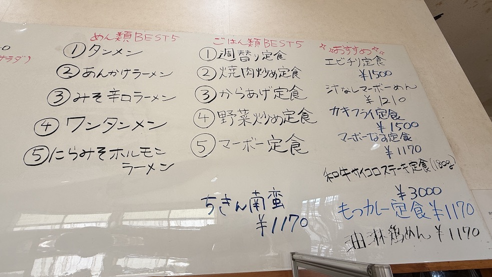 カウンター上部はホワイトボードになっており、人気メニューがわかるのは良いアイデア👍