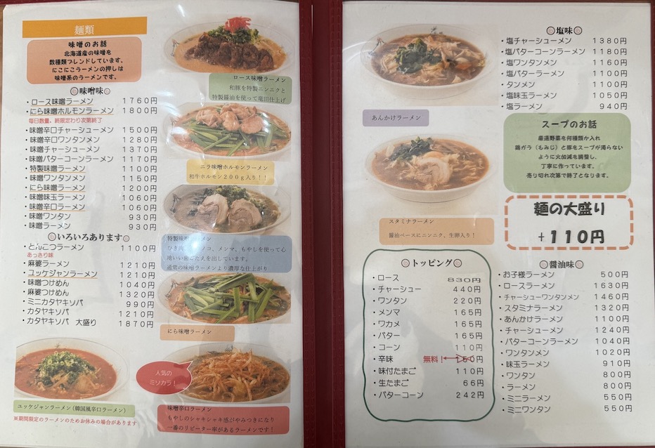 らーめん食堂にこにこのメニュー