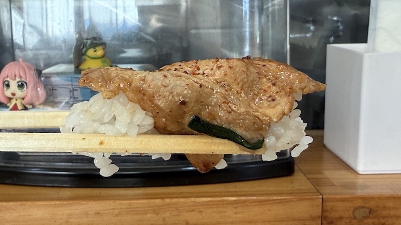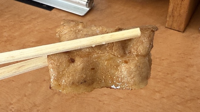 豚バラ肉だけで食べてみると、意外にも味付けはそんなに濃くなくて、豚の脂も程よく落ちているためクドくないっす。ちょっと豚肉は硬いですが、うんうんこれは