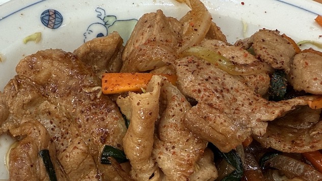 久しぶりのにこにこさん、この日は初めて炒め物で定食の焼肉炒めを選択してみました✨ さすが炒め物、予想したよりも早く登場しました!