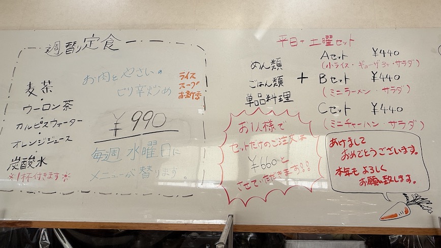平日と土曜日はセットメニューがあるので、ちょっとお得に食べることが可能です