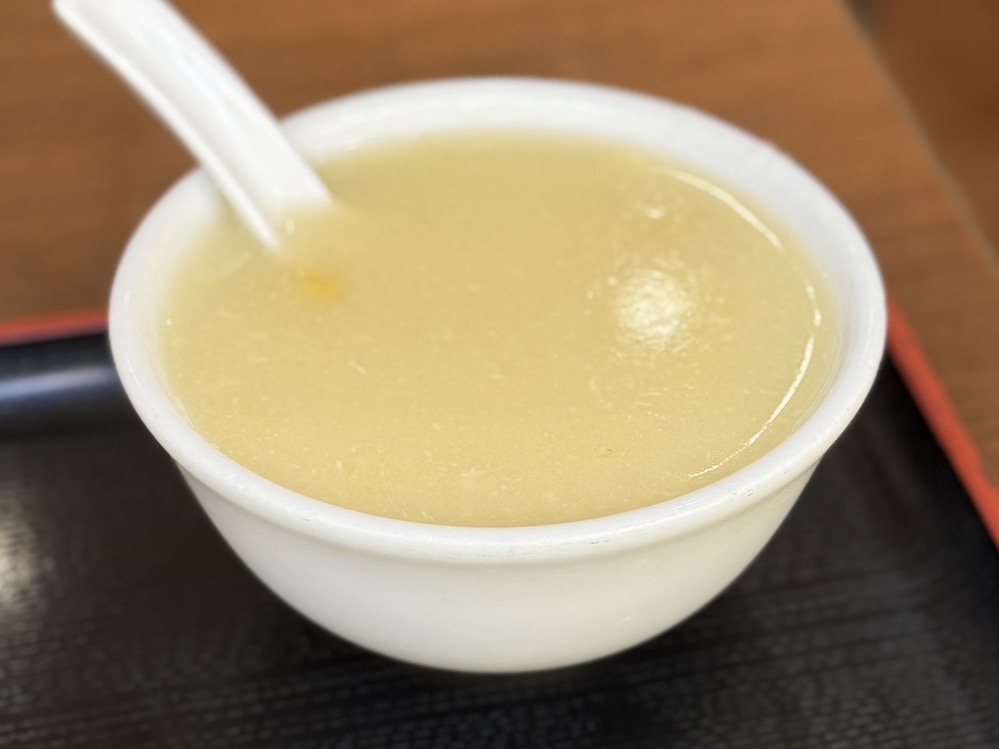 コーンスープは通常のお椀よりもひと回り大きい上に、このようになみなみと入って登場(笑)これが、ちょっと薄めなんですがサラッとして飲みやすいっす👍