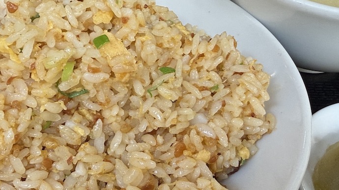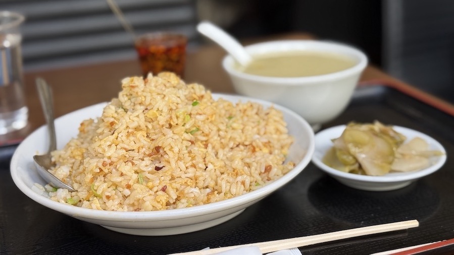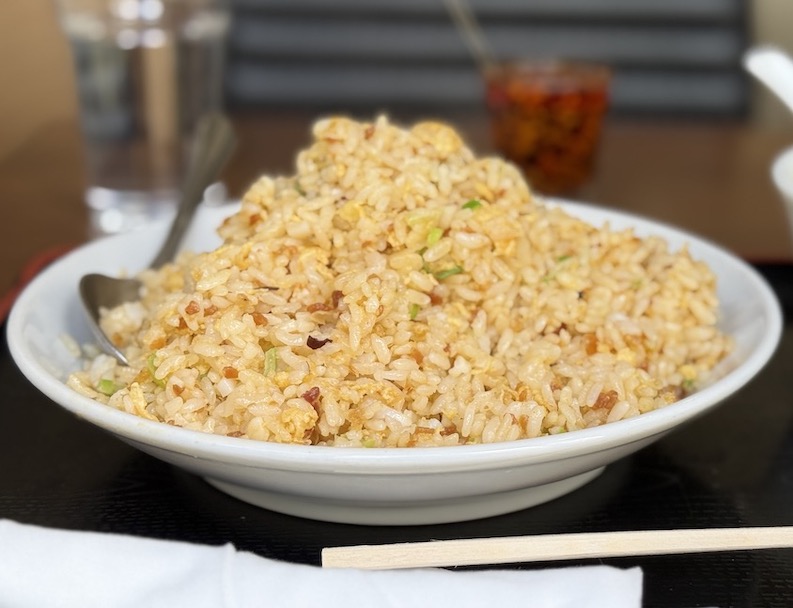 しかも、この炒飯の山を眺めると、米粒がめちゃんこパラパラしてそうなのがわかりますよね!