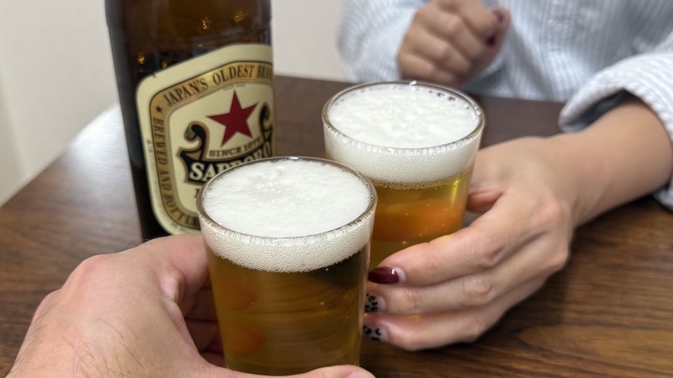 まずは二人だったので瓶ビールを発注すると、やったぜ赤星が登場🌟 シュワっと喉を潤してから、それでは中華を満喫させて頂きましょうかね。