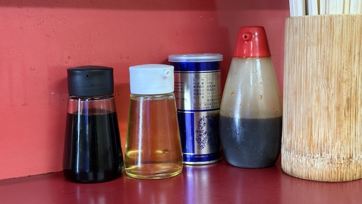 卓上調味料は醤油・酢・胡椒・う〜んこちらは餃子用のタレでしょうかね?