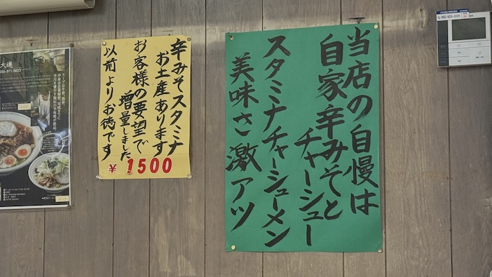 肝心なアピールが隠れちゃっていますが、当店の自慢は自家辛みそとチ なのでチャーシュー?