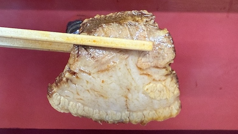 チャーシューを持ち上げてびっくりしたのが、この厚さが1センチ越えの肉厚max。