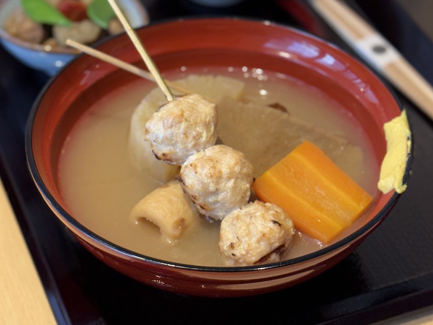 ランチはこちらの3種類となっており、焼き鳥屋さんらしいラインナップにおでん!そうなんです、とり大さんの目玉メニューの一つは鶏だしで炊いたおでん🍢