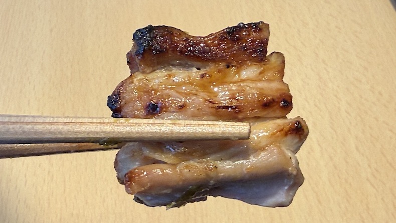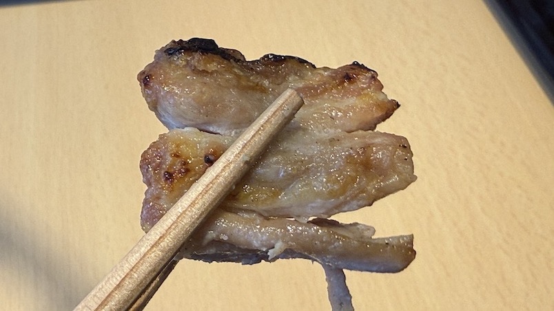 ぷりっとした食感が心地良く、脂身は丁寧に除かれてますね。さらに串打ちも綺麗で丁寧な仕事ぶりが伝わってきます。