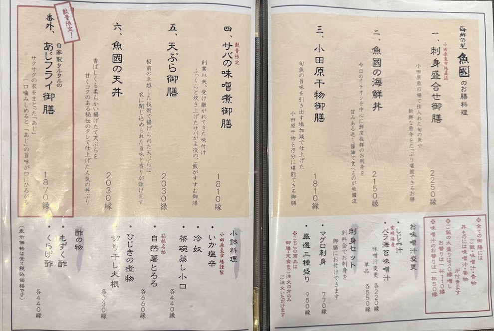 小田原駅から近く、便利で美味しくお魚が食べたいなら魚国さん。特にランチ営業では、オープン前から記帳して並ぶほどの行列店なので要注意です。