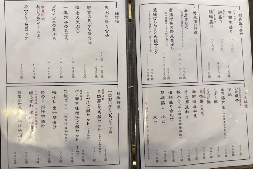 こちらはメインごとに分かれたお膳になっており、2000円前後なのでディナーであればリーズナブルな価格設定かな。お昼だとちょっとお高い気もするけど、美味しい魚であれば問題なしでしょう🙋♂️