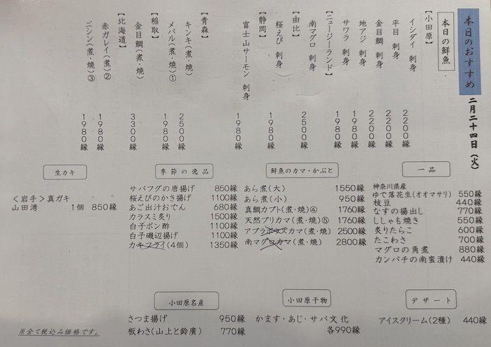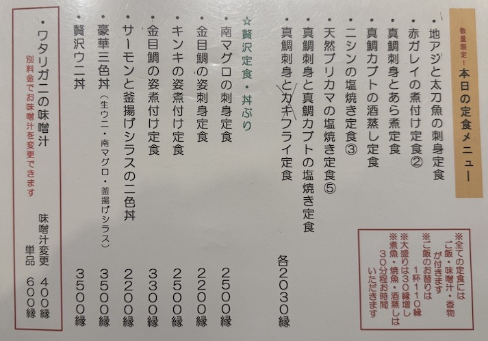 定番のメニュー以外にもメニューがあり、こちらには本日の定食メニューがずらりと勢揃い✨ わぁ、さすが早川漁港に近いこともあり、地魚ぽいメニューが揃っていて素敵やないかい!
