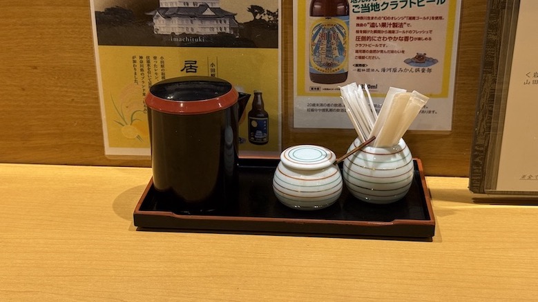 卓上調味料は、醤油&七味唐辛子と最小限です。