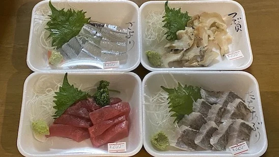 つぶ貝は貝好きとしては外せないし、さよりは大好きなのでマストバイ、生魚に疲れた時用にはたち炙り、もちろんマグロはマストバイ(笑)