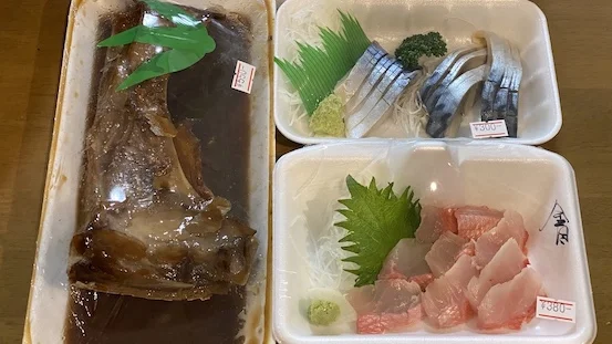 ちなみにこちらで販売されているお刺身、お惣菜の全ては店内飲食と同価格なのがゴイスー🙌