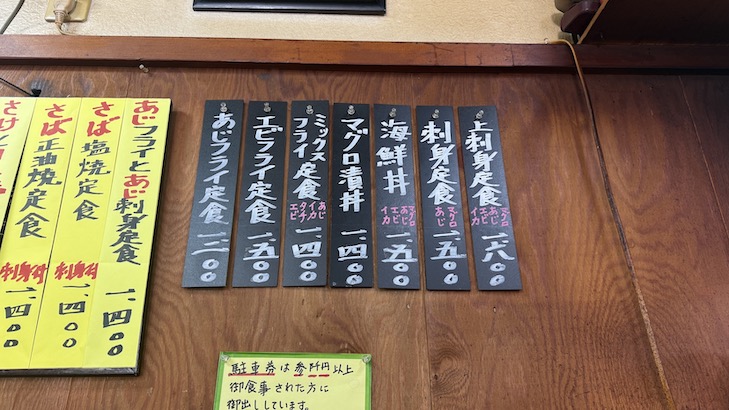 なんとなく、こちらの札メニューは観光客向けな感じだなぁ。けど、ミックスフライはいつか食べたいと思います🙋♂️