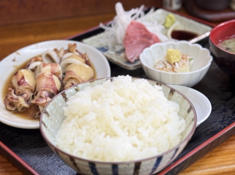 もちろん注文したメニューは、夢にまで見ていた小ヤリイカ煮付定食(刺身付)でしょう🙋♂️