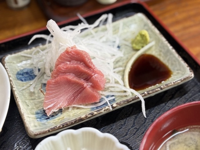 ちょっと驚いたのが、おまけで付いているような刺身付きのマグロ。てっきり赤身が来ると思っていたら、なんと筋はありますがサシが入りまくってます😍